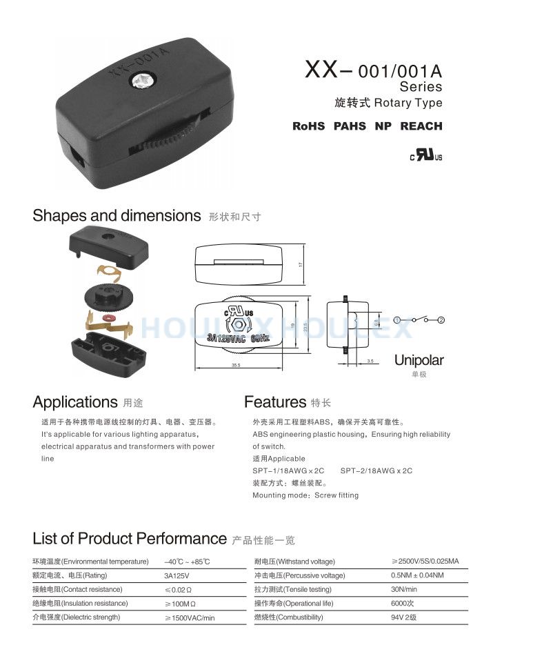 XX-001A 3A/125V